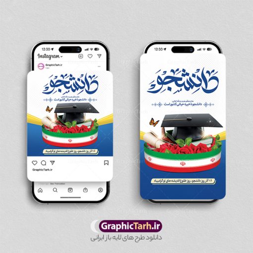دانلود فایل لایه باز قالب پست اینستاگرام روز دانشجو و طرح استوری تبریک 16 آذر با فرمت psd و قابل ویرایش