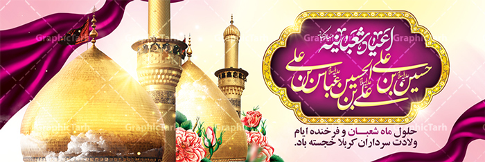 دانلود فایل طرح بنر لایه باز حلول ماه شعبان و اعیاد شعبانیه و پلاکارد تبریک ولادت امام حسین حضرت ابوالفضل و امام سجاد