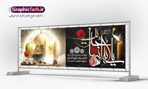 - از این طرح بنر افقی زیبا می توانید برای چاپ تسلیت سالروز شهادت امام سجاد استفاده کنید.