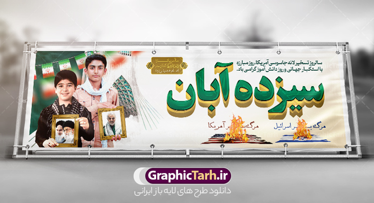 دانلود طرح بنر psd سیزده آبان ، دانلود بنر روز دانش آموز ، طرح لایه باز بنر سیزده آبان