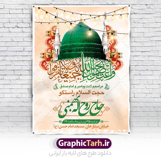 طرح بنر اطلاعیه جشن ولادت پیامبر (ص) و امام صادق (ع)