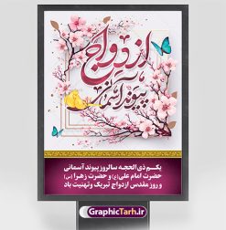 دانلود فایل طرح پوستر لایه باز تبریک روز ازدواج و بنر اول ذی الحجه سالروز ازدواج امام علی (ع) و حضرت فاطمه زهرا (س)