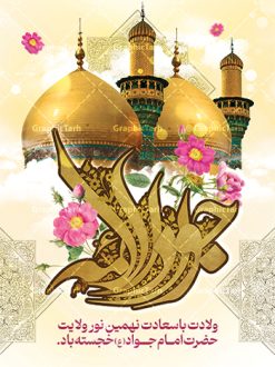 - نمونه بنر psd جشن ولادت جواد الائمه (ع) در ابعاد 30 در 40 سانتی متر و با رزولوشن 300 از سایت گرافیک طرح قابل دانلود می باشد.