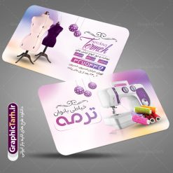 - نمونه طرح کارت ویزیت آموزشگاه خیاطی بانوان لایه باز و قابل ویرایش در فتوشاپ با فرمت PSD و قابلیت تغییر سایز در اندازه های مختلف.