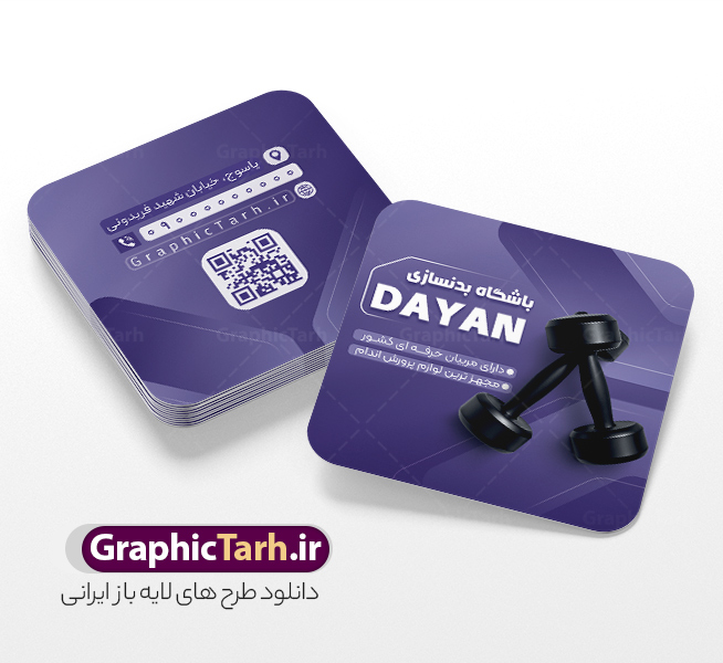 کارت ویزیت مربعی باشگاه بدنسازی با قابلیت ویرایش