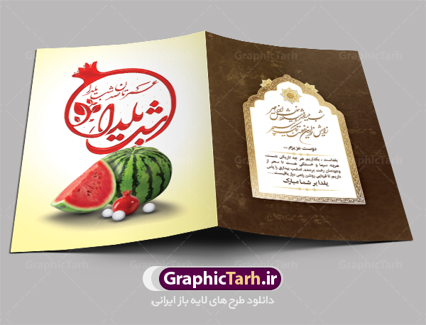 فایل لایه باز کارت تبریک شب چله در ابعاد استاندارد A4 و با رزولوشن 300 از سایت گرافیک طرح قابل دانلود می باشد.