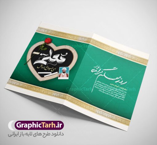 طرح کارت پستال لایه باز روز معلم و با خوشنویسی روز معلم مبارک