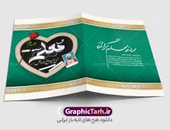 دانلود فایل طرح لایه باز کارت تبریک 12 اردیبهشت بزرگداشت استاد مطهری و کارت پستال آماده تبریک روز معلم با خوشنویسی روز معلم مبارک باد