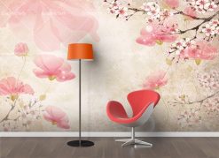 دانلود طرح پوستر کاغذ دیواری گل صورتی لاکچری و فانتزی